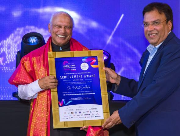 Затем, в пятницу 23 июня на церемонии в Палате общин Вестминстерского дворца Великобритании награды получили несколько деятелей, в их числе был и д-р Сухдео. Ему была вручена награда Всемирной тамильской организации «За жизненные достижения в экономике» в знак признания заслуг д-ра Сухдео, в том числе его вклада в экономическое развитие тамильского народа во всем мире, особенно в Индии и на Шри-Ланке.